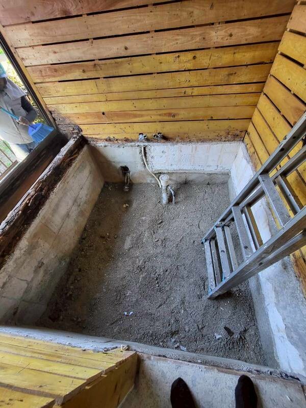 現場での工夫:腐った土台を交換し、脱衣場の解体は最小限に抑えコストダウン。入り口の段差をなくしバリアフリー仕様に。車椅子でも利用できる空間へ改善。