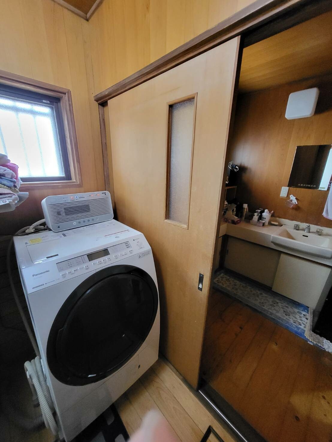 もともと脱衣場と洗面所の間には壁があり、「くの字型」のレイアウトで少し圧迫感がありました。