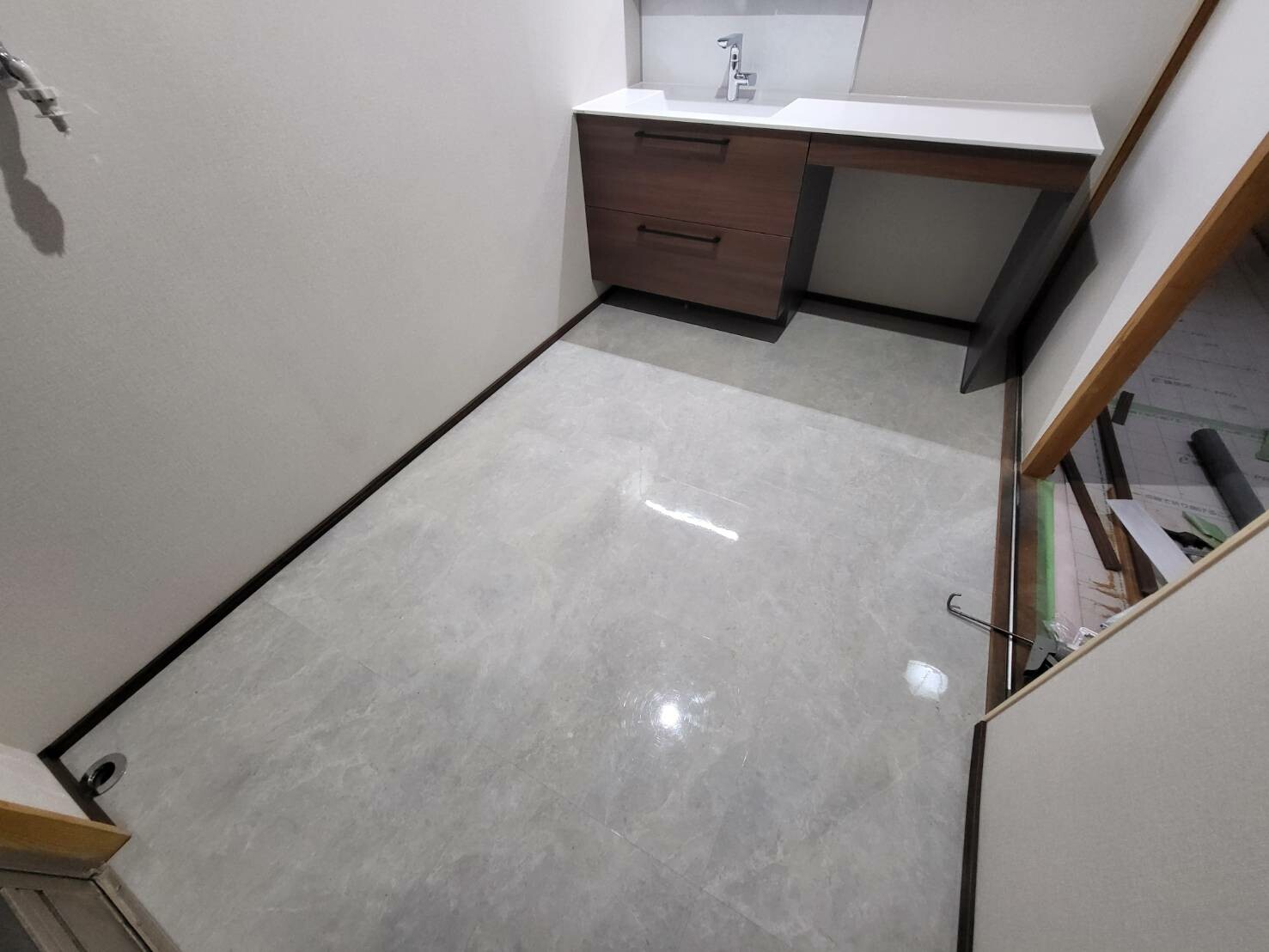 床は木板から大理石柄の明るい床材に変え、掃除のしやすさと高級感を両立しました✨