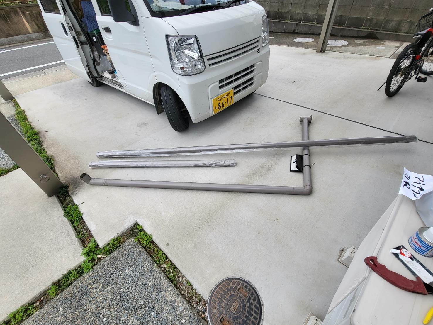 作業内容:カーポート雨樋交換工事(LIXIL ネスカ)